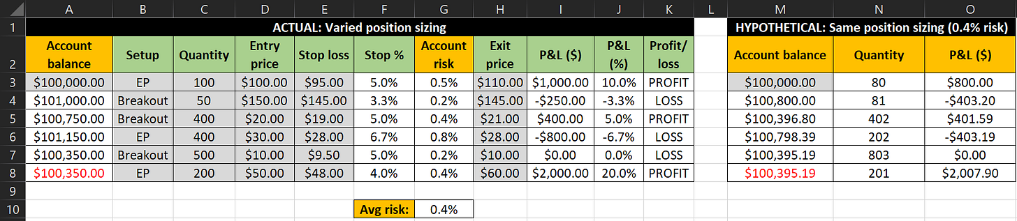 Even if you vary your size in line with hard rules you’ve set for yourself, it’s still to your benefit to see how your results would change if you didn’t vary your size: