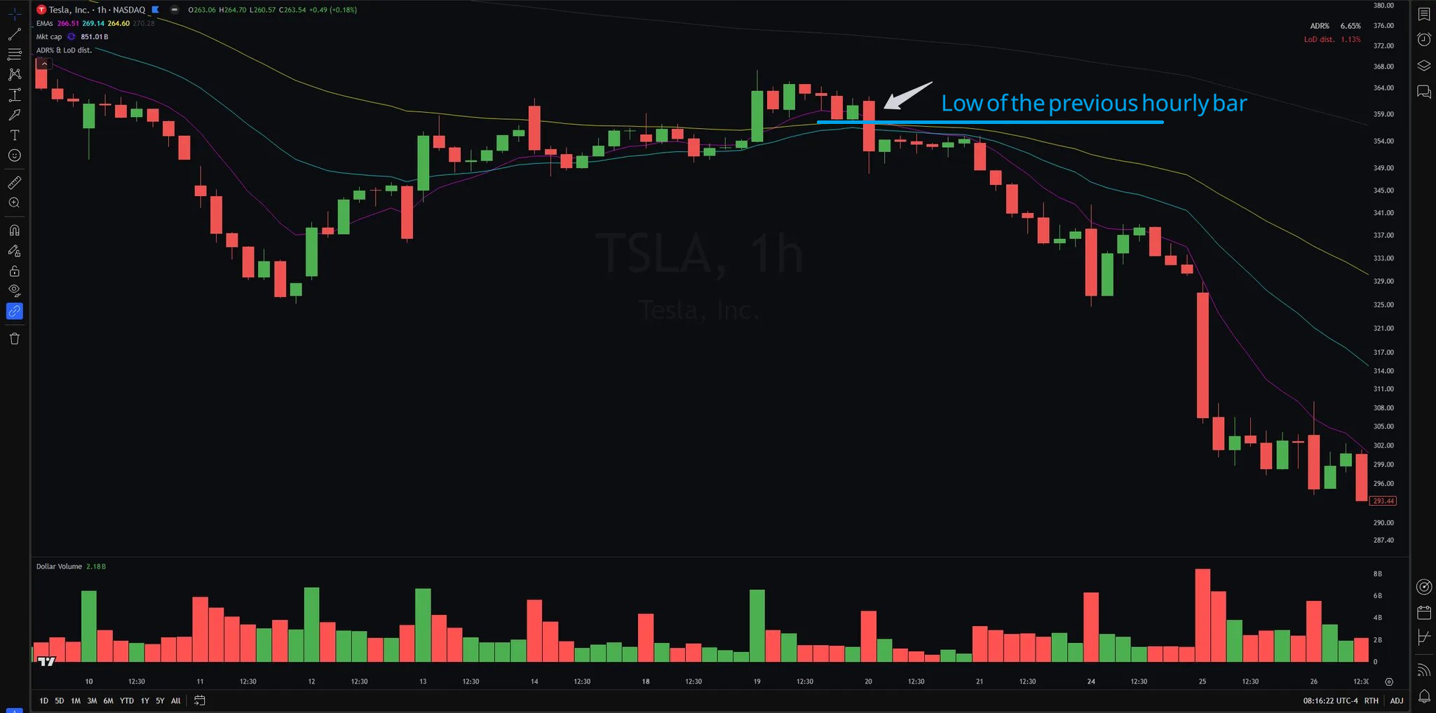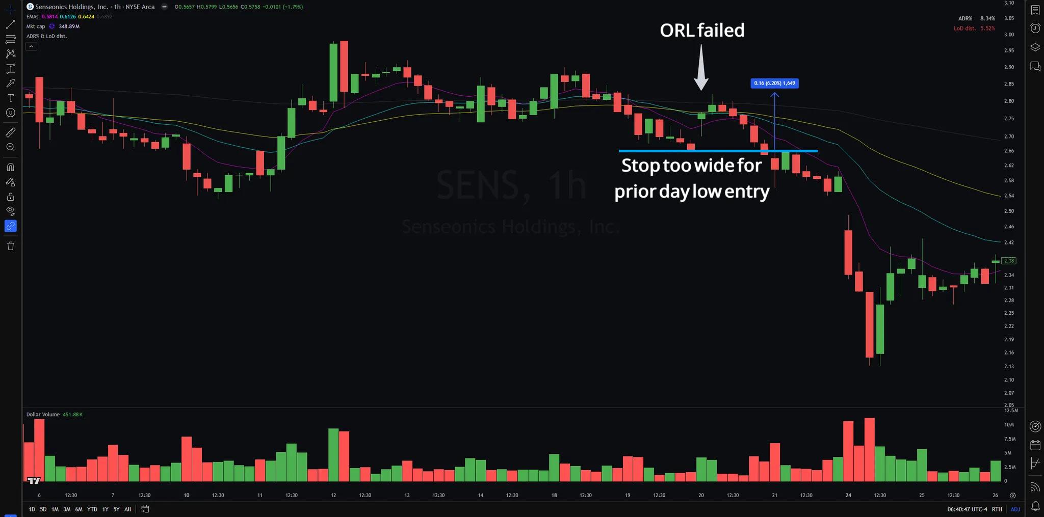 When I zoomed in and looked at the hourly chart, I could also see that using the prior day low wouldn’t work well either.