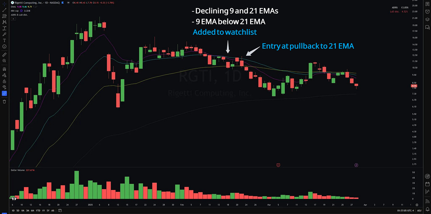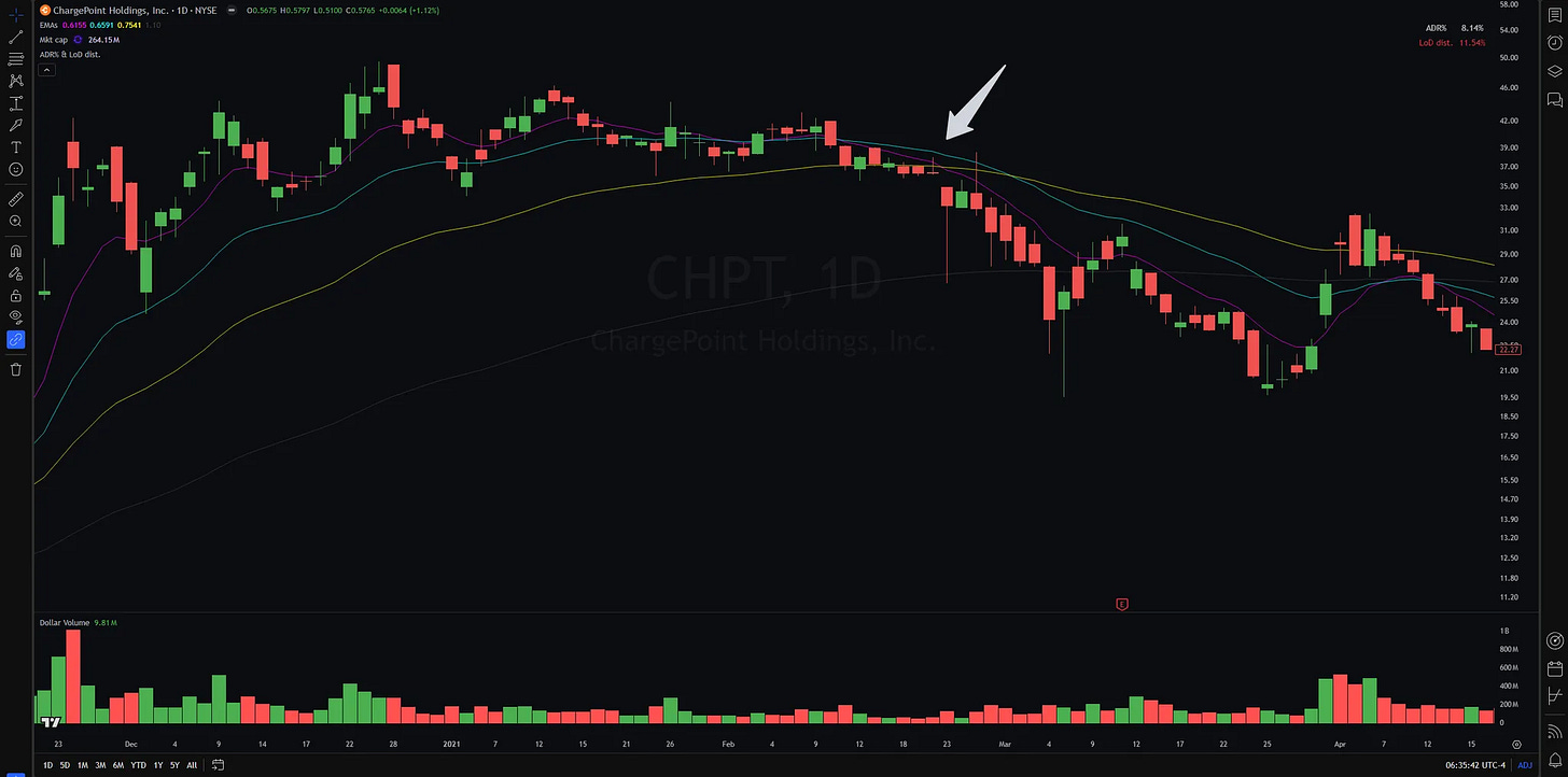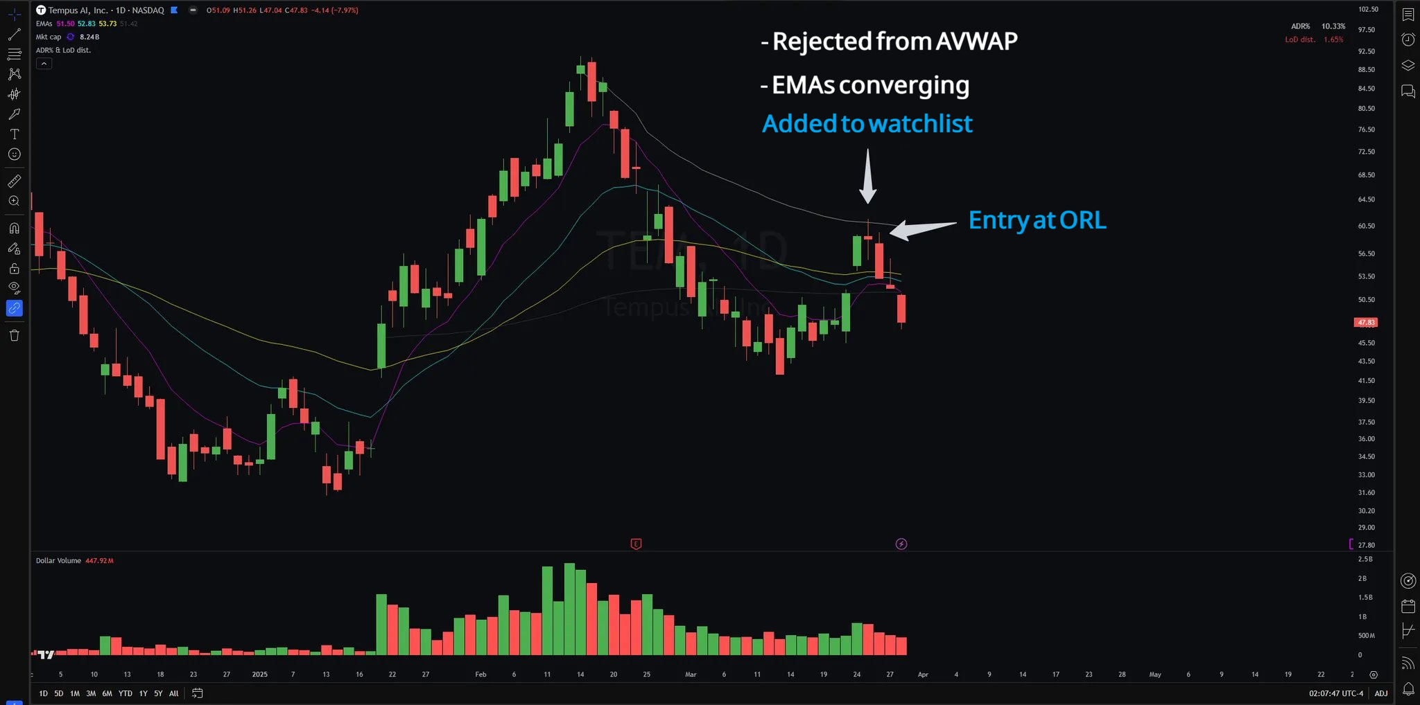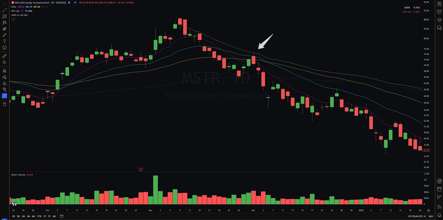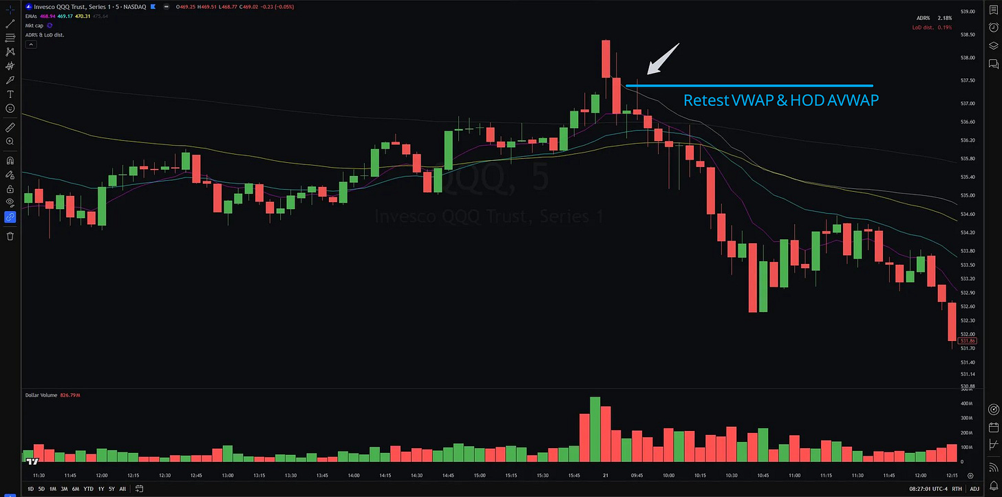 I then also recalled Qullamaggie mentioning the intraday rejection of VWAP when he explained how to trade the parabolic short setup on his blog: