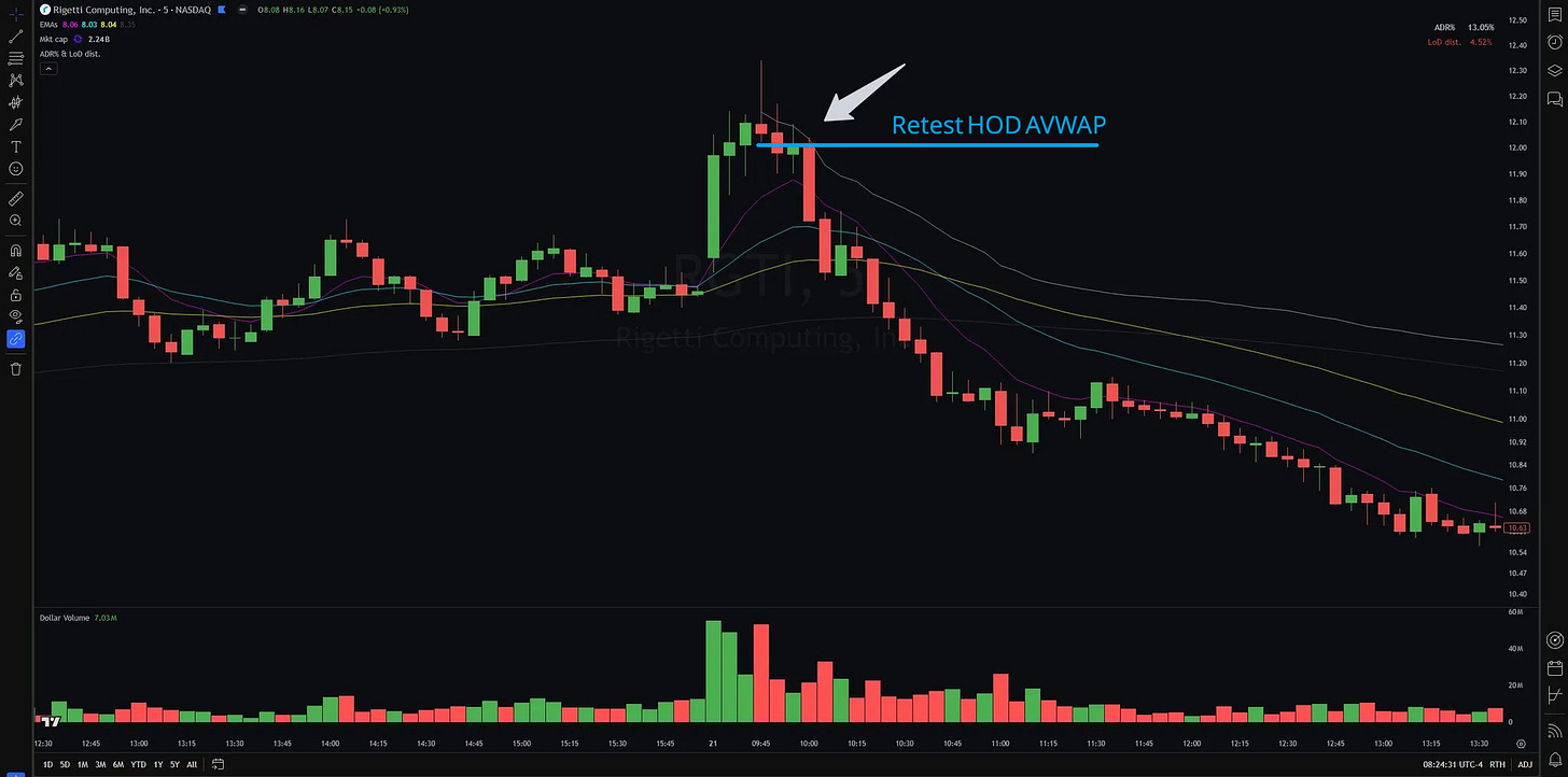 2. Intraday retest of the VWAP or HOD AVWAP.