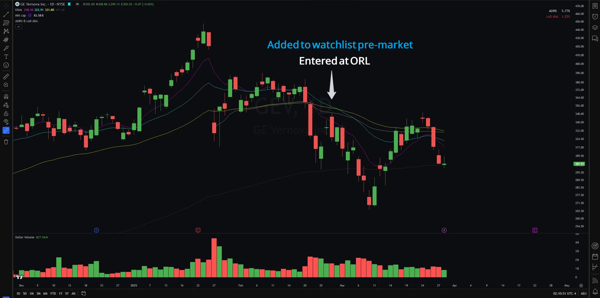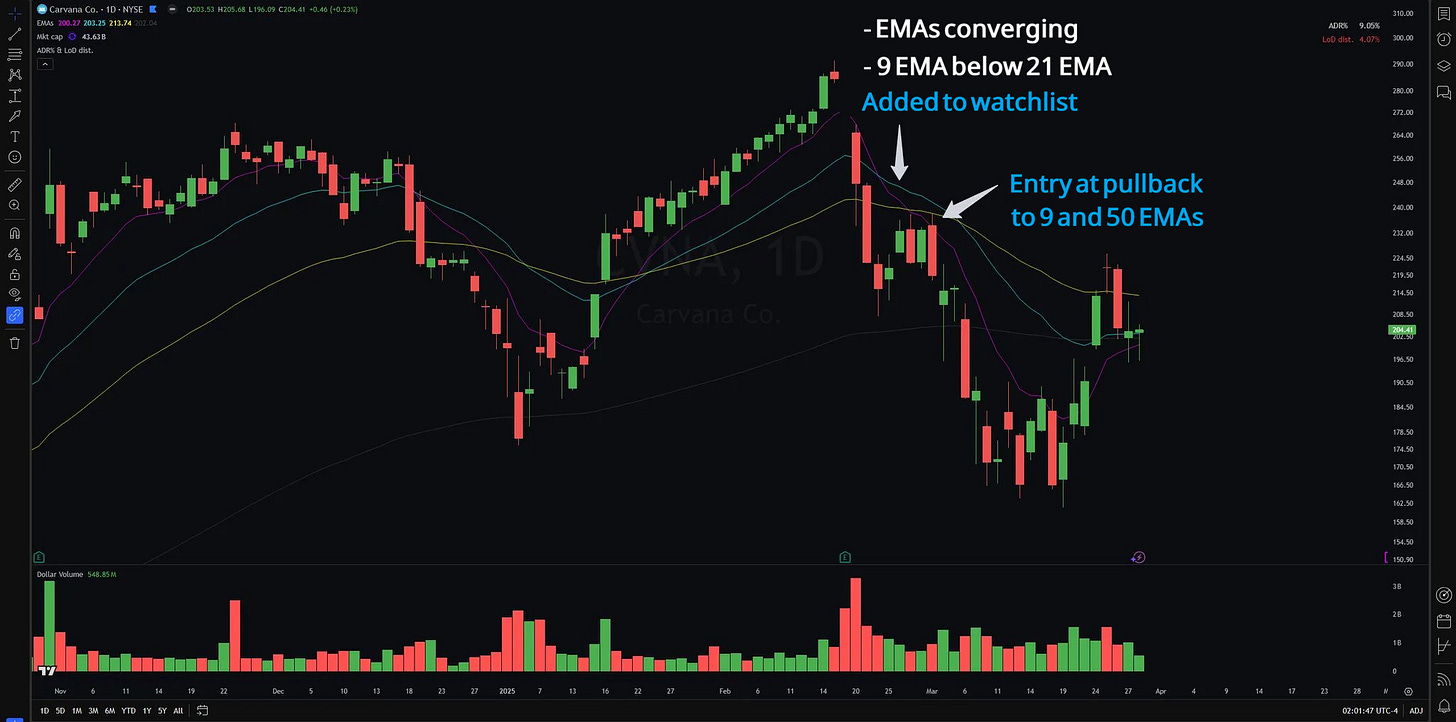Track the stock so you can anticipate the trade — notice Martin’s separation between a signal to add a stock to his watchlist, and the entry signal. This allows for precise execution.