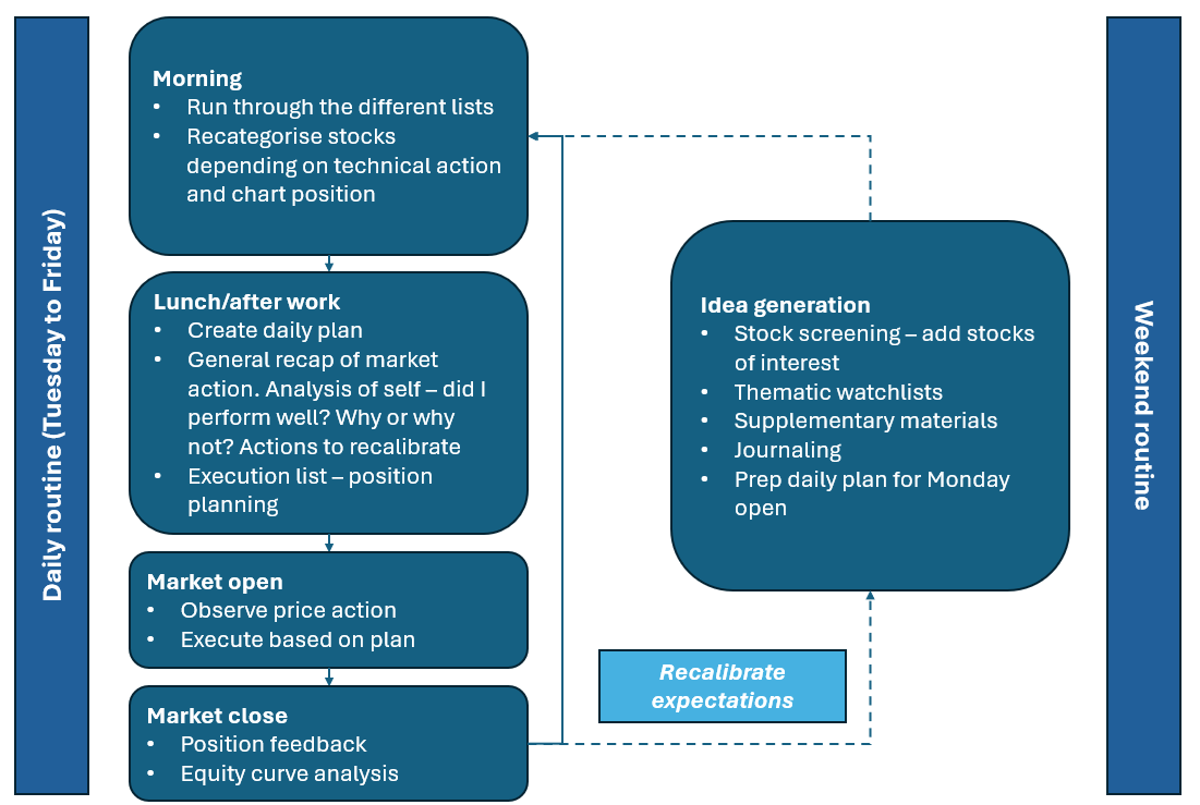 A detailed daily plan helps with getting a feel for the overall market and to execute well — but limit it to names already on your watchlists. This is how you maximise results when time is limited.