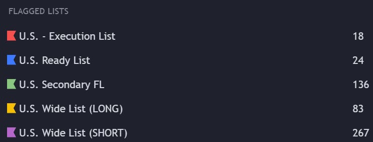 Different watchlist types are very helpful to stay organised. Plus, seeing the distribution of names across your lists in itself tells you something about the overall market.